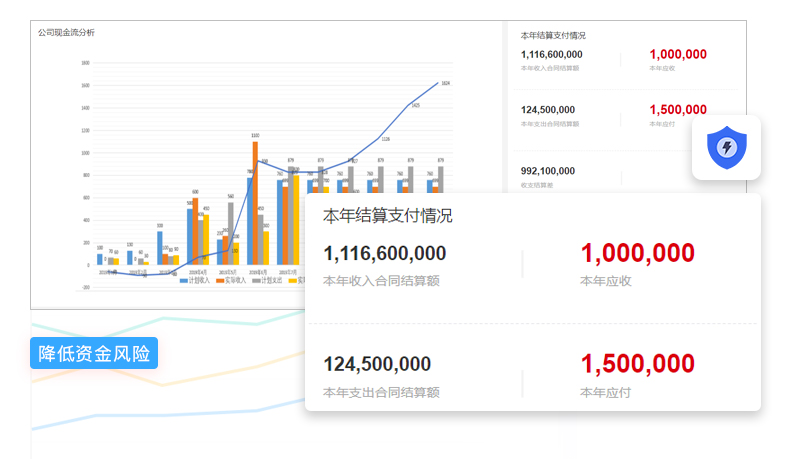 應收應付直接綁定項目業務線,人責權劃分明確,資金風險自動提醒。