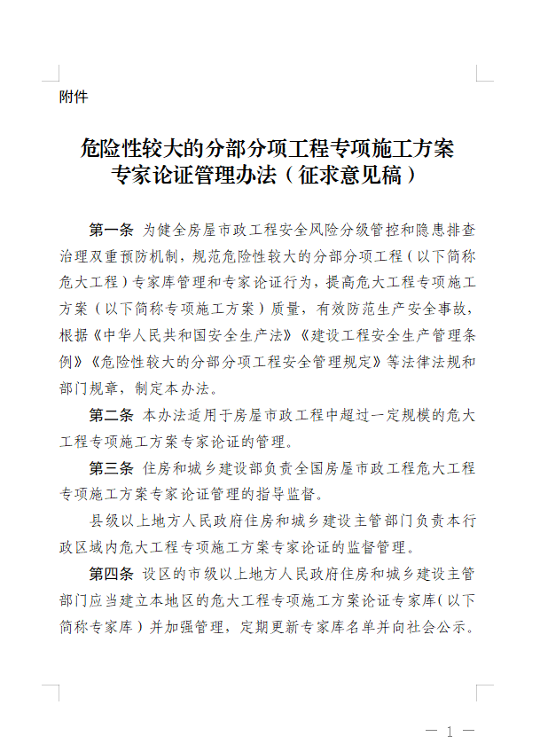 附件:危險性較大的分部分項工程專項施工方案專家論證管理辦法(征求意見稿)