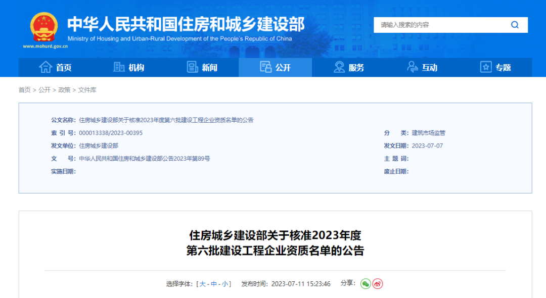 7月11日,住建部發布關于核準2023年度第六批建設工程企業資質名單的公告,其中16家建筑業企業“升特”: