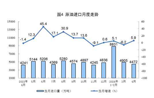 進(jìn)口數(shù)據(jù)來(lái)源于海關(guān)總署,其中2024年4月份數(shù)據(jù)為快訊數(shù)據(jù)。