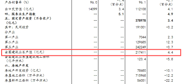 國家統(tǒng)計(jì)局:全國建筑業(yè)前三季度總產(chǎn)值217411億元!同比增長4.4%!