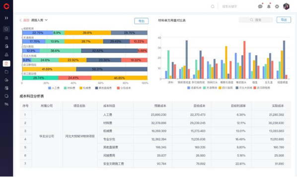 實時成本追蹤:自動采集材料、人工、機械等實際支出數據,與預算對比分析,生成偏差報告。