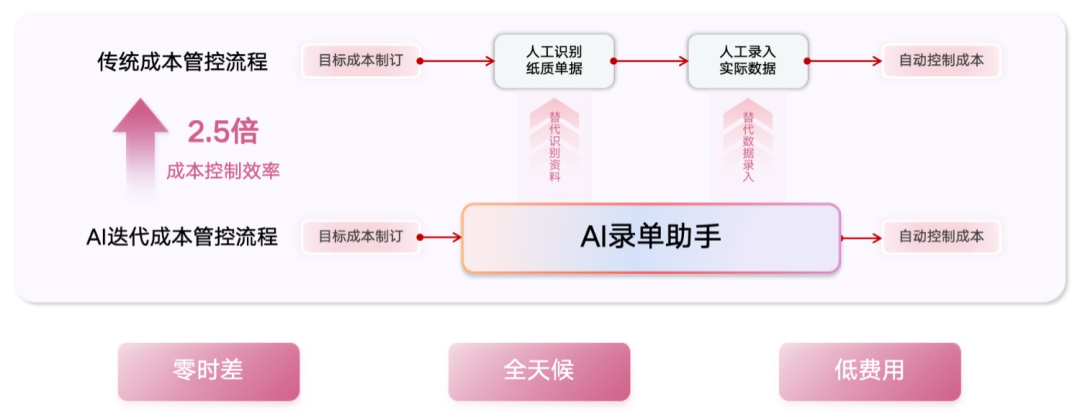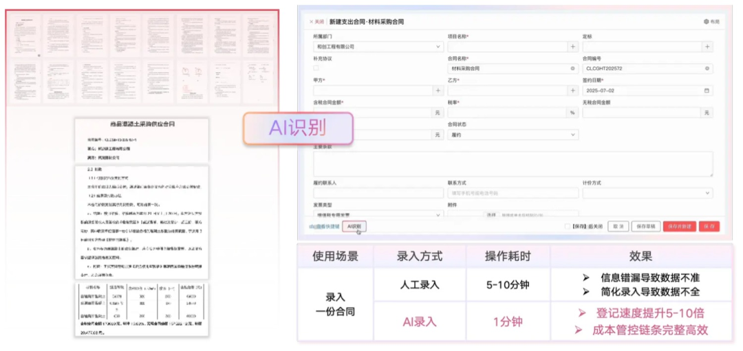 借助AI錄單助手,企業(yè)在保證最低管理成本的同時(shí),建立起穩(wěn)健的成本鏈條,實(shí)現(xiàn)高效的成本管理與項(xiàng)目推進(jìn),不僅能夠提升數(shù)據(jù)質(zhì)量,也能極大提升員工的工作效率與幸福度。